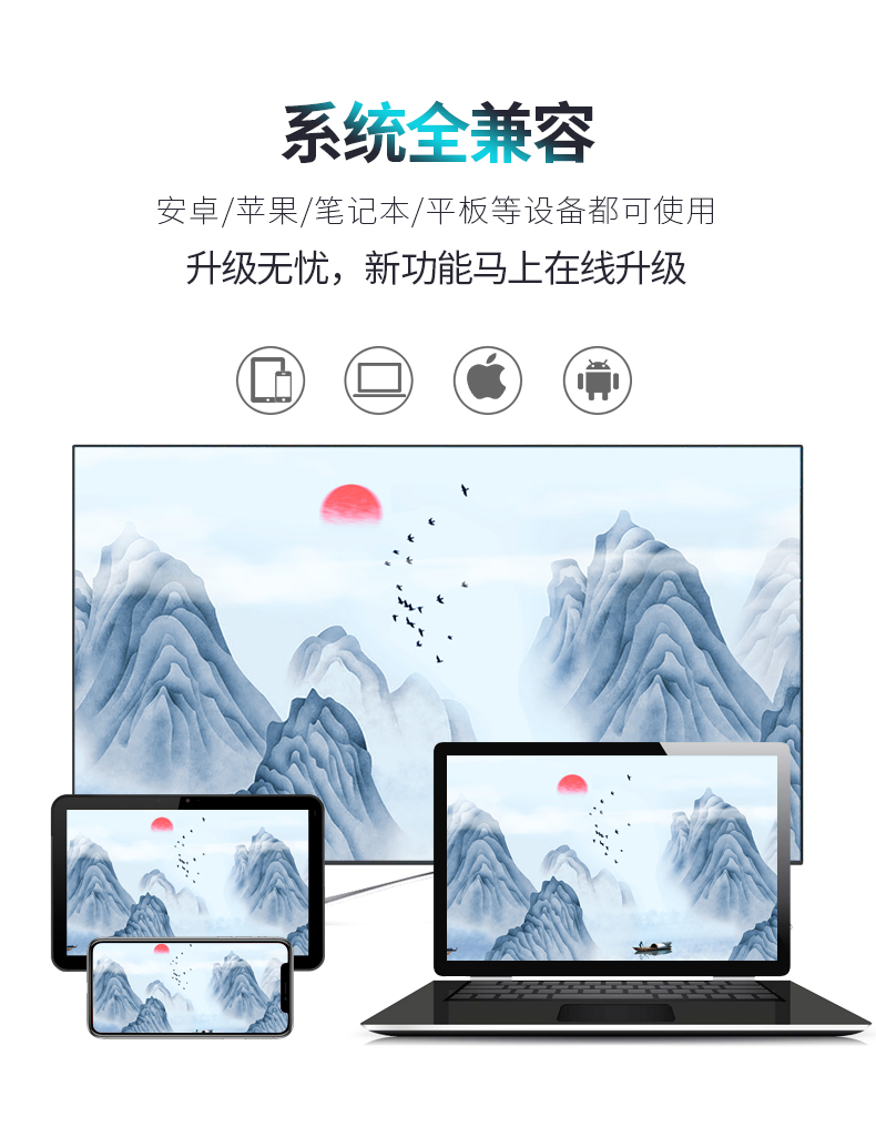 - HDMI+VGA 接口,可同时使用- 3.5毫米音频适配器,用于高保真语音- 蜂巢消散孔- 支持Miracast / DLNA / Airplay- 高品质和无延迟显示- 在DLNA和Miracast之间单击切换